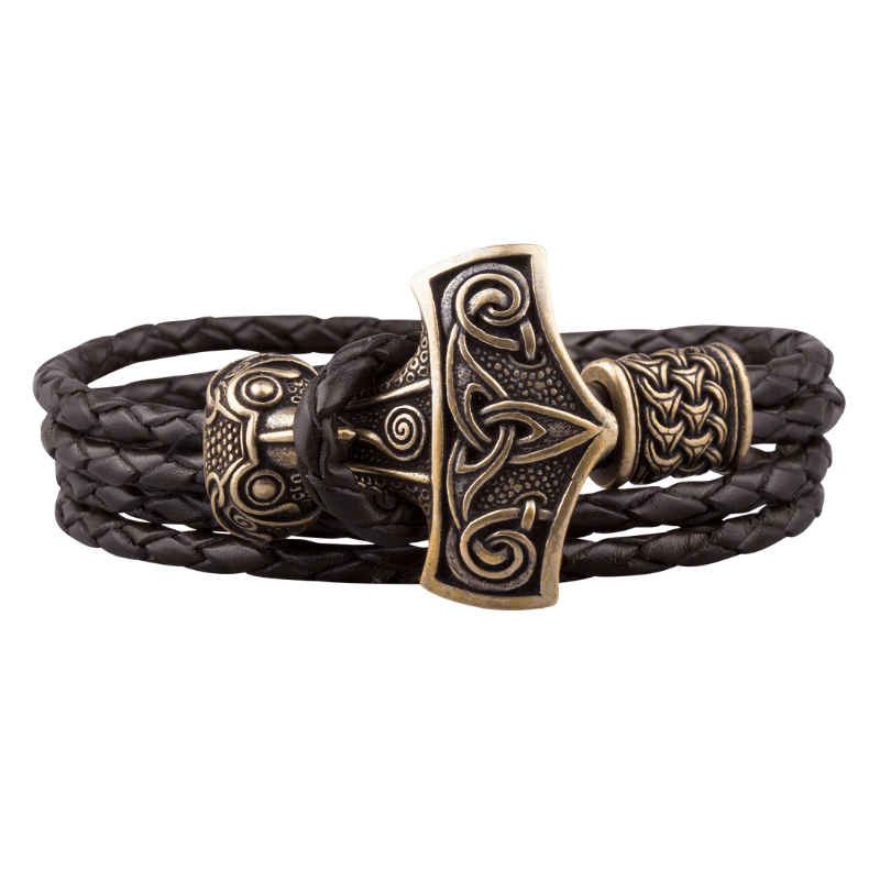 This leather and bronze Thor's Hammer bracelet is named for Thorvald Eriksson, the son of Erik the Red.