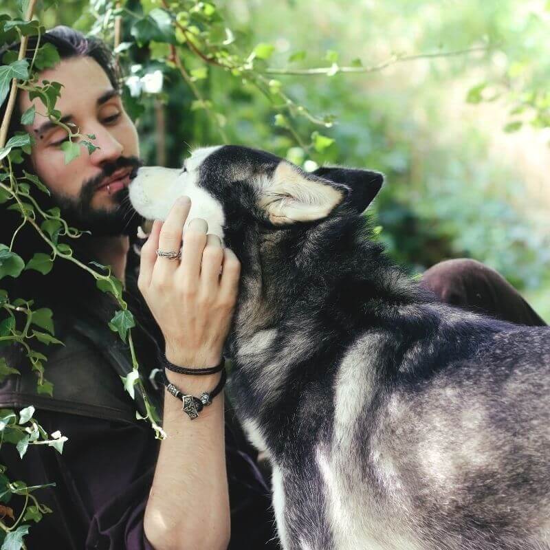 As well as being made from the kind of leather that you could imagine on the wrist of a Viking sailor, this bracelet uses symbols that would have been meaningful to Thorvald.