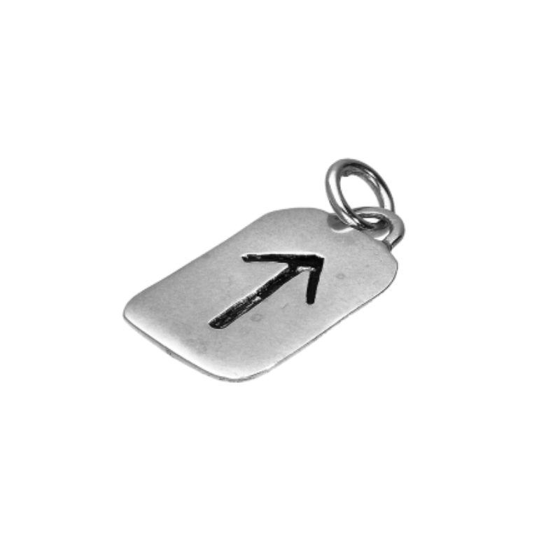 This striking sterling silver pendant features the Tiwaz rune from the Viking runic alphabet. This rune represents the T sound in Elder Futhark and also represents the concept of justice.