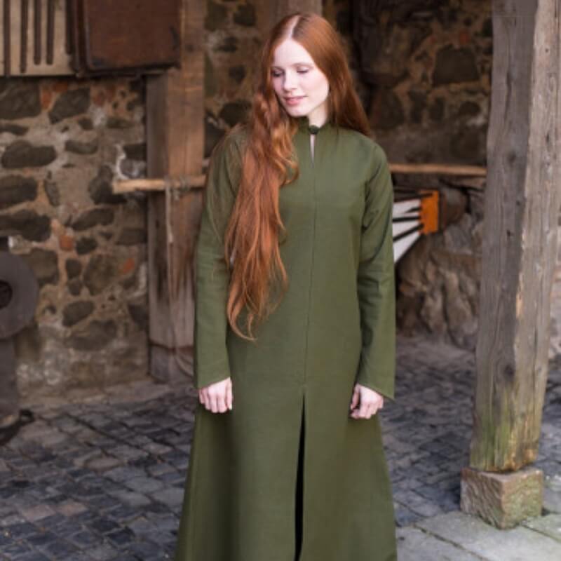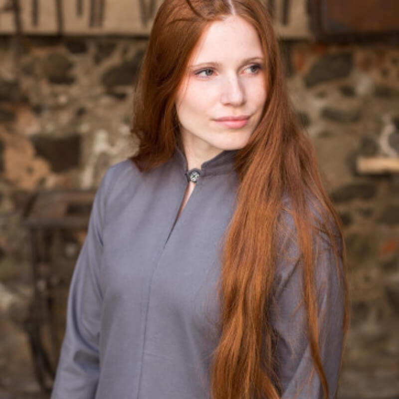 The "Ranwen" dress is a versatile and striking piece that serves as the elegant centerpiece of any wardrobe. This basic fabric dress can be paired with almost any garment, whether it's trousers, skirts, overdresses, or tunics, making it a must-have for any medieval or Viking-inspired collection.