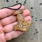 Handcarved Unique Wood Walnut Runic Mjolnir Odin's Horns Pendant