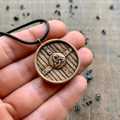 Handcarved Unique Wood Walnut Viking Shield Triquetra Pendant