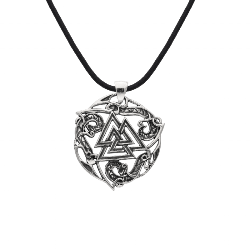 The Valknut Symbol Ornament pendant is a striking tribute to the bravery and resilience of Viking warriors, handcrafted in sterling silver.