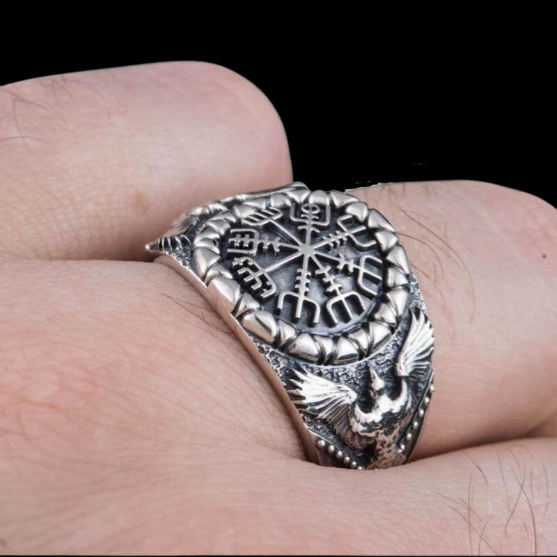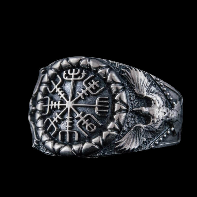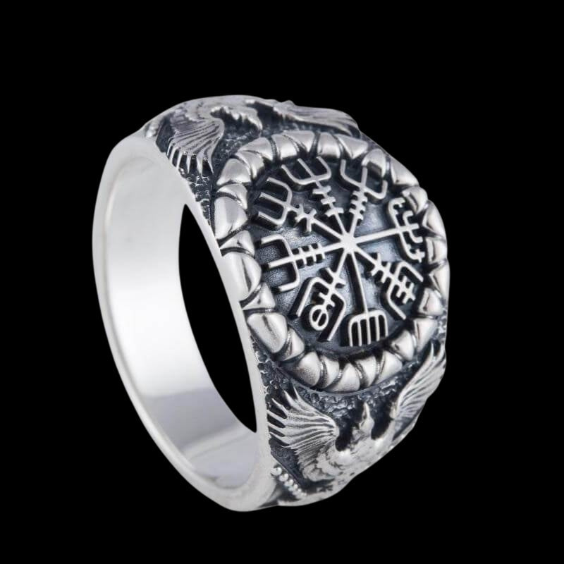Handcrafted Vegvisir Symbol Raven Style Silver Ring