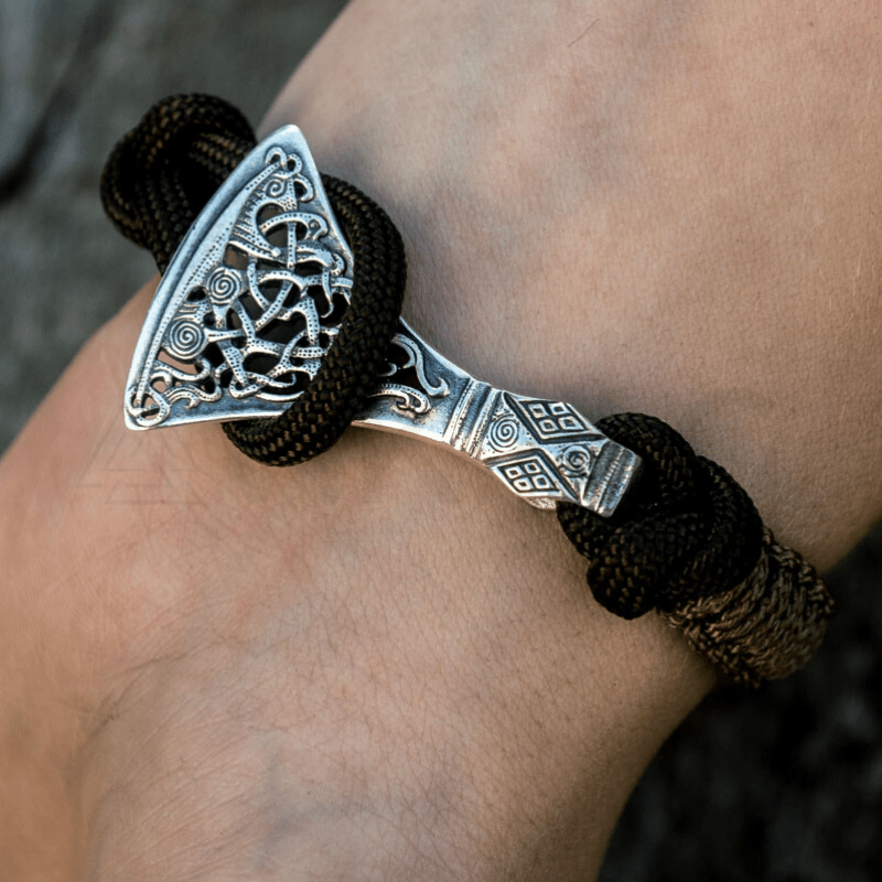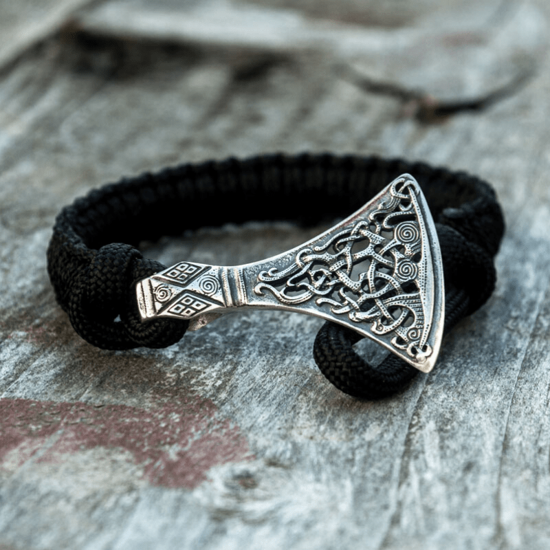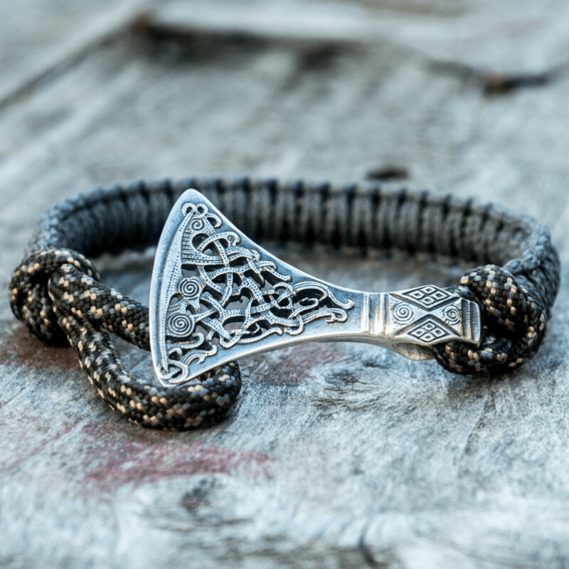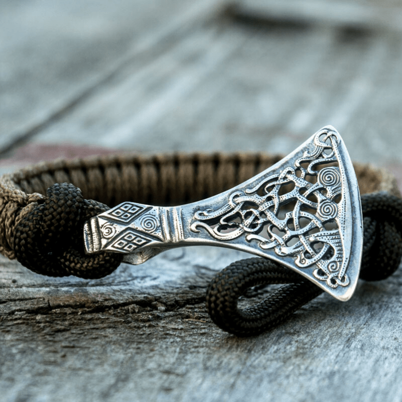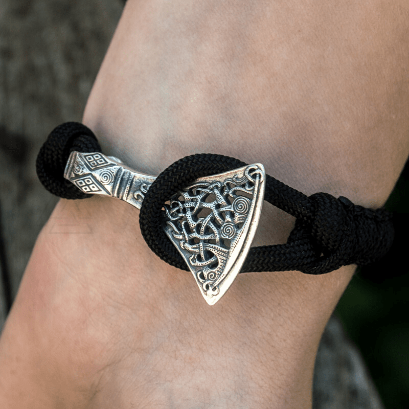 Handcrafted Viking Axe Paracord Bracelet Sterling Silver