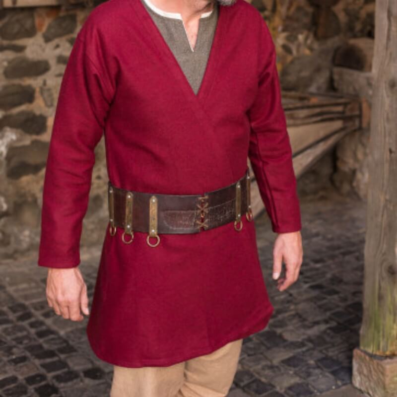 The Viking Coat Loki embodies both the resilience and resourcefulness of the Norse people. Crafted from red wool felt, it mirrors garments worn by traders and warriors in the bustling port of Haithabu during the 10th century.