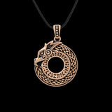 This bronze pendant captures the endless loop of Jormungandr's form, its tail in its mouth, circled with runes and Viking knotwork. It is more than just a symbol of doom it embodies the eternal cycle of life, death, and rebirth that the Norse held sacred.
