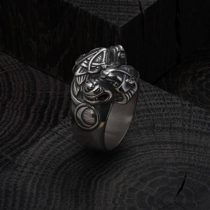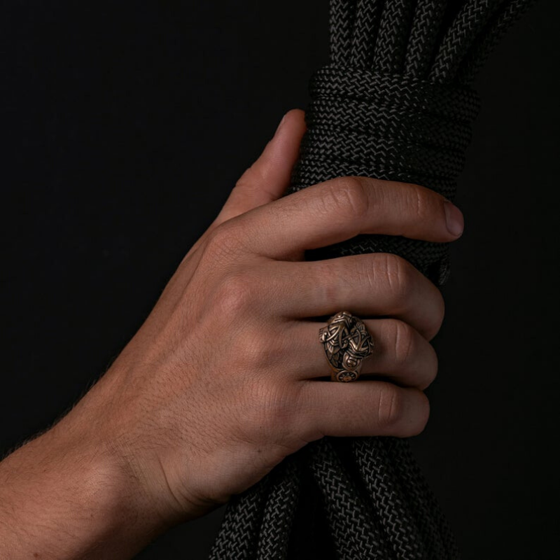Cast in high-quality Italian bronze, this ring is a remarkable homage to the fearsome power and prophetic destiny of these celestial predators. It's a piece that not only adorns your hand but also invokes the profound and epic narratives that form the backbone of Norse mythological tradition.