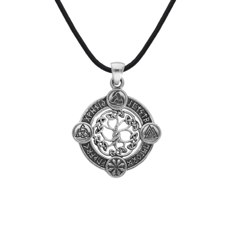 This exquisite sterling silver pendant encapsulates that mystical power. At its heart is Yggdrasil, encircled by a ring of runes, the sacred script of the Norse people, representing their connection to destiny and the unseen world.