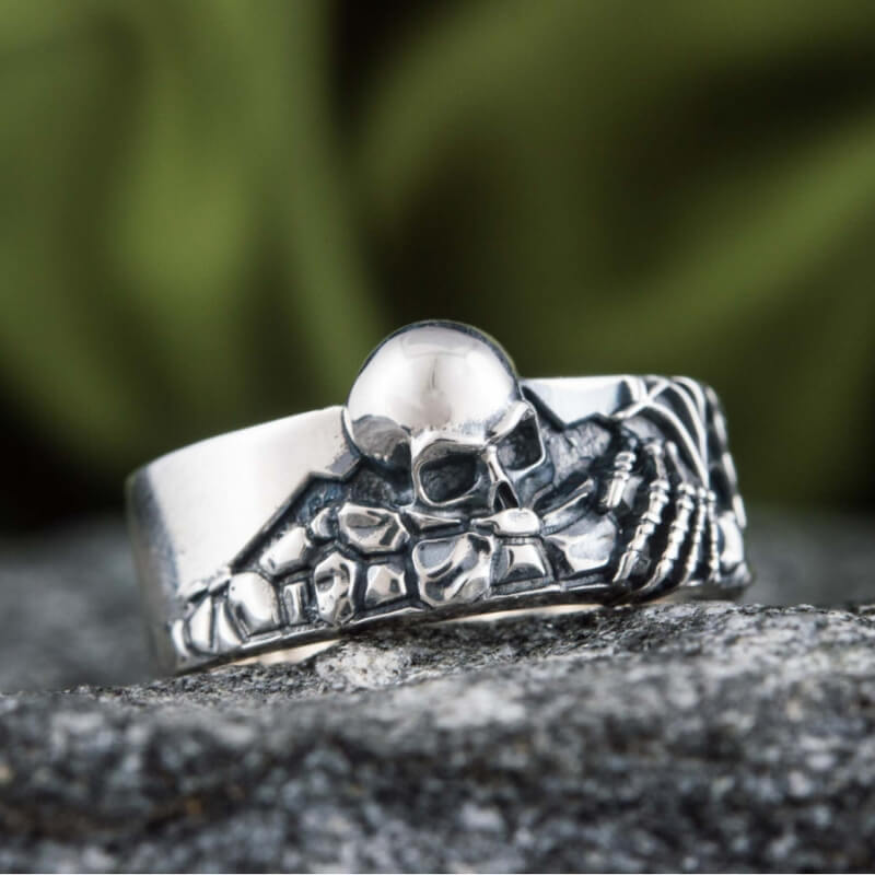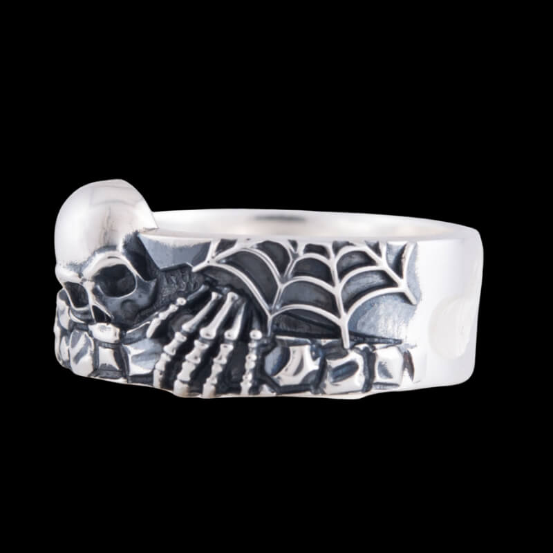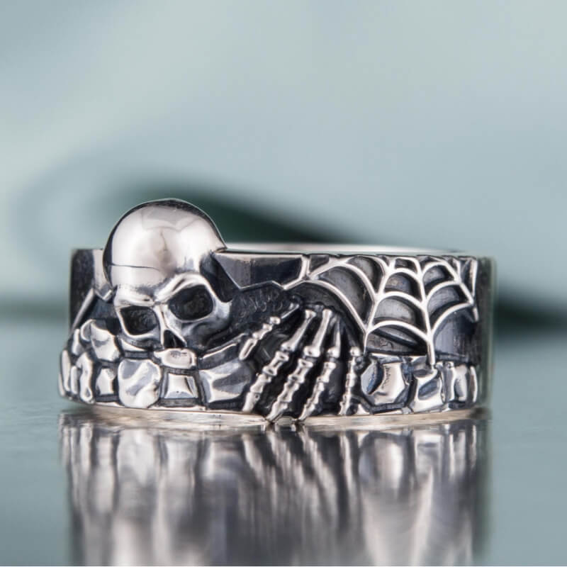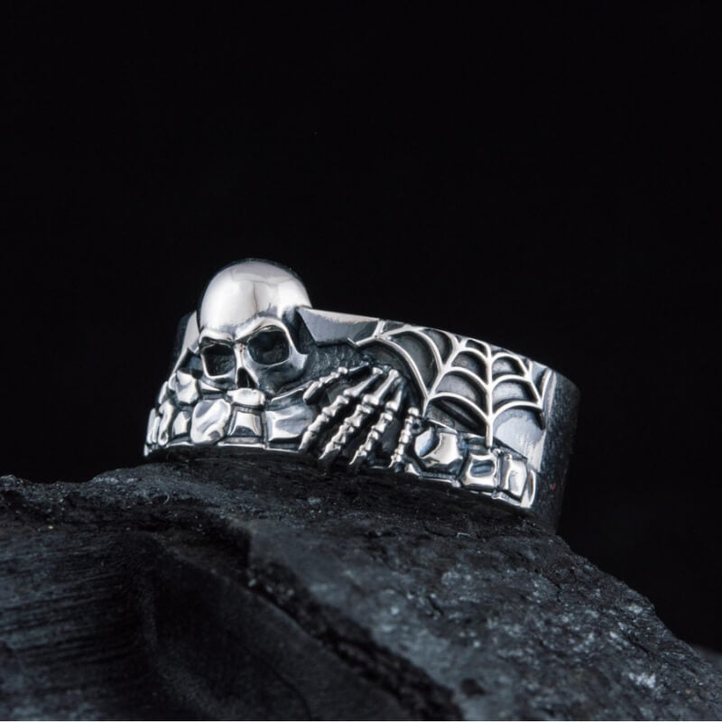 Cada anel é meticulosamente feito à mão com a melhor prata esterlina 925, significando não apenas elegância, mas longevidade. Sua durabilidade o torna mais do que apenas uma bugiganga sazonal; é um emblema duradouro da época mais assustadora do ano.