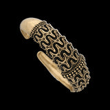 Abrace o legado dos Vikings com esta braçadeira, uma prova da sua influência duradoura no artesanato e no design. Ele convida o usuário a levar adiante a tradição Viking de exploração, coragem e arte.