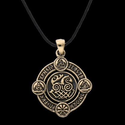 Pingente de bronze com símbolos nórdicos Sleipnir feito à mão