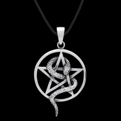 Pingente de prata esterlina 925 com pentagrama de cobra Wiccan Pagan