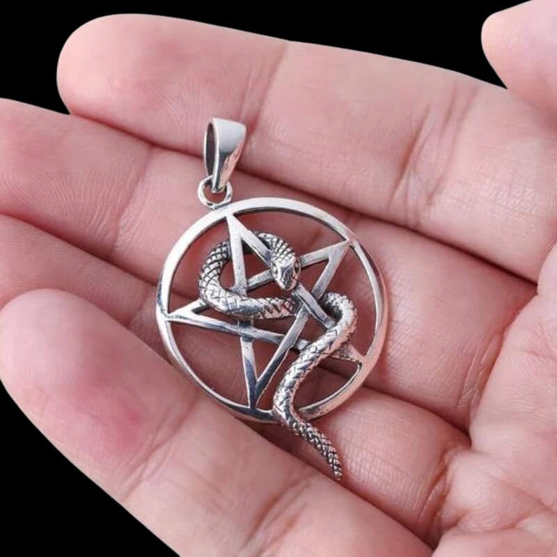 Este poderoso pingente reúne os símbolos sagrados do pentagrama e da serpente enrolada, imersos tanto no misticismo Wicca quanto na mitologia nórdica.
