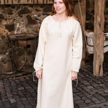 Esteja você participando de uma reconstituição medieval, de um evento LARP ou simplesmente desfrutando do conforto e autenticidade de roupas históricas, o Under Dress Annecke Natural oferece estilo e funcionalidade. Abrace a herança da moda nórdica e medieval com este lindo e versátil vestido de baixo.