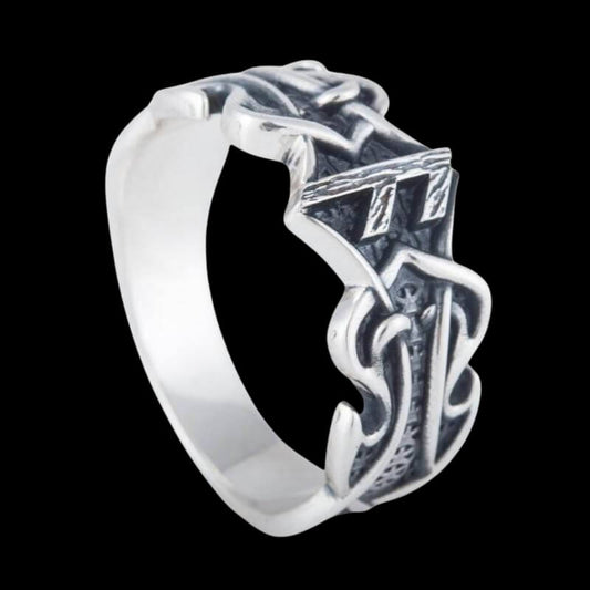 Anel Vegvisir e Jörmungandr em prata esterlina 925