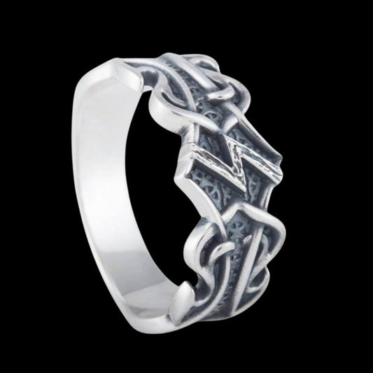 Anel de prata esterlina com ornamento nórdico runa Ansuz feito à mão