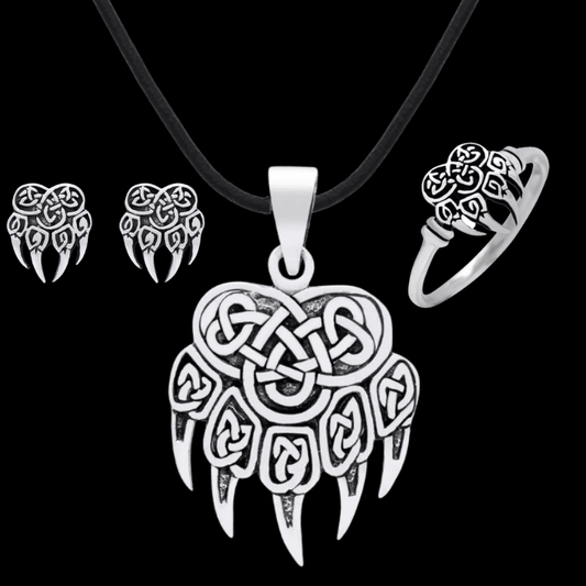 Conjunto de joias femininas pingente de pata de urso, brincos e anel