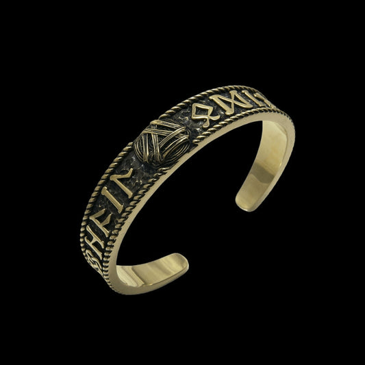 Anel de braço feito à mão com runas Valknut e Elder Futhark