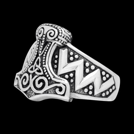 Anel Biker Mjölnir do Thor com Nó Celta em Prata Esterlina 925
