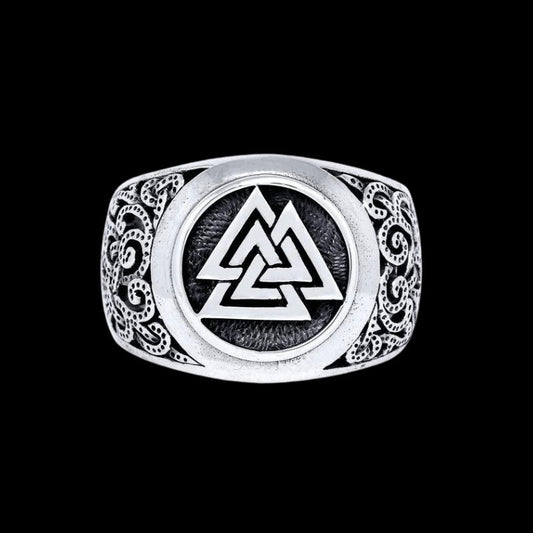 Anel escandinavo nórdico estilo Valknut Mammen em prata esterlina 925