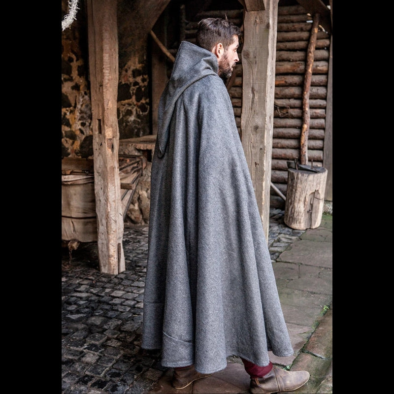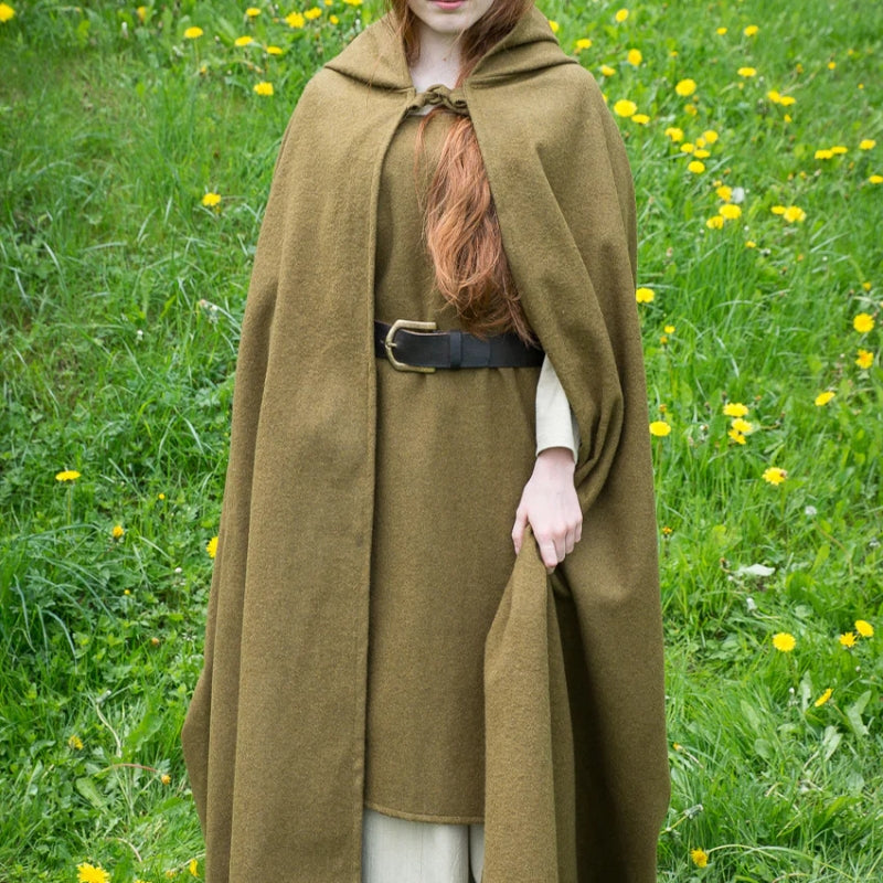 Designad för praktisk användning och äkthet, är Wool Hooded Cloak Hibernus tillgänglig i tre längder för att passa din preferens: ankellång eller lägre vad. Ta ett steg tillbaka i historien medan du njuter av modern komfort och stil.