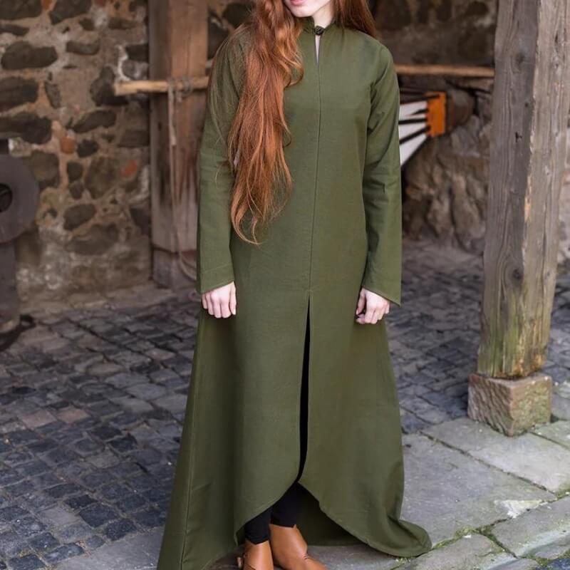"Ranwen"-klänningen är ett mångsidigt och slående plagg som fungerar som den eleganta mittpunkten i varje garderob. Den här basklänningen i tyg kan kombineras med nästan alla plagg, oavsett om det är byxor, kjolar, överklänningar eller tunikor, vilket gör den till ett måste för alla medeltida eller vikingainspirerade kollektioner.