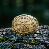 Den här ringen har Vegvisir, den nordiska kompassen, som sitt sigill. Detta är en äkta magisk runstav hämtad från isländska grimorier från 1700-talet. Det är en vägledande talisman. Den kommer att säkerställa att du alltid är på rätt väg, även när du inte vet ditt mål.