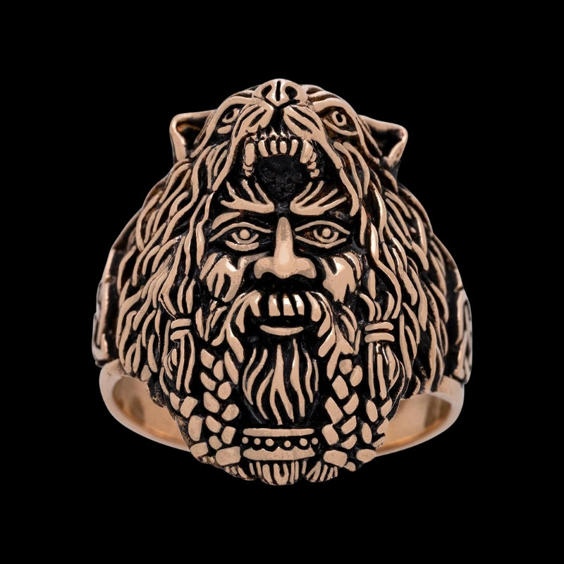 Ansiktet som avbildas på denna ring representerar en berserk vid höjden av sin vrede, som personifierar den skrämmande styrka som slog rädsla i fienders hjärtan. Björnhuvan är mer än bara en prydnad; den symboliserar den djupa kopplingen dessa krigare hade med naturens primala krafter. Att bära den här ringen handlar inte bara om stil, det handlar om att kanalisera den råa, ostoppliga kraft som berserkerna personifierade.