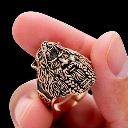 Tillverkad av högkvalitativt brons och oxiderad för att framhäva varje detalj, är denna ring en hyllning till den skrämmande anden hos bersärkarna. Oavsett om du bär det som ett statementsmycke eller som en symbol för din egen inre styrka, kommer den här ringen utan tvekan att göra ett starkt intryck.